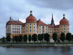 Ce château de chasse fut construit par le duc-électeur Maurice de Saxe au XVIe siècle avant d'être remodelé en style baroque par Auguste le Fort au XVIIIe siècle.