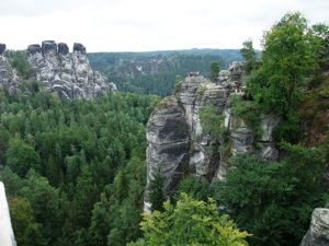 La Bastion (Bastei) - un point de vue magnifique sur la vallée de l'Elbe et surtout sur les rochers avec des jolis noms comme par exemple : la ruche, le nid des cigogne, la locomotive, le gardien de la vallée, la catapulte et l'agneau ...